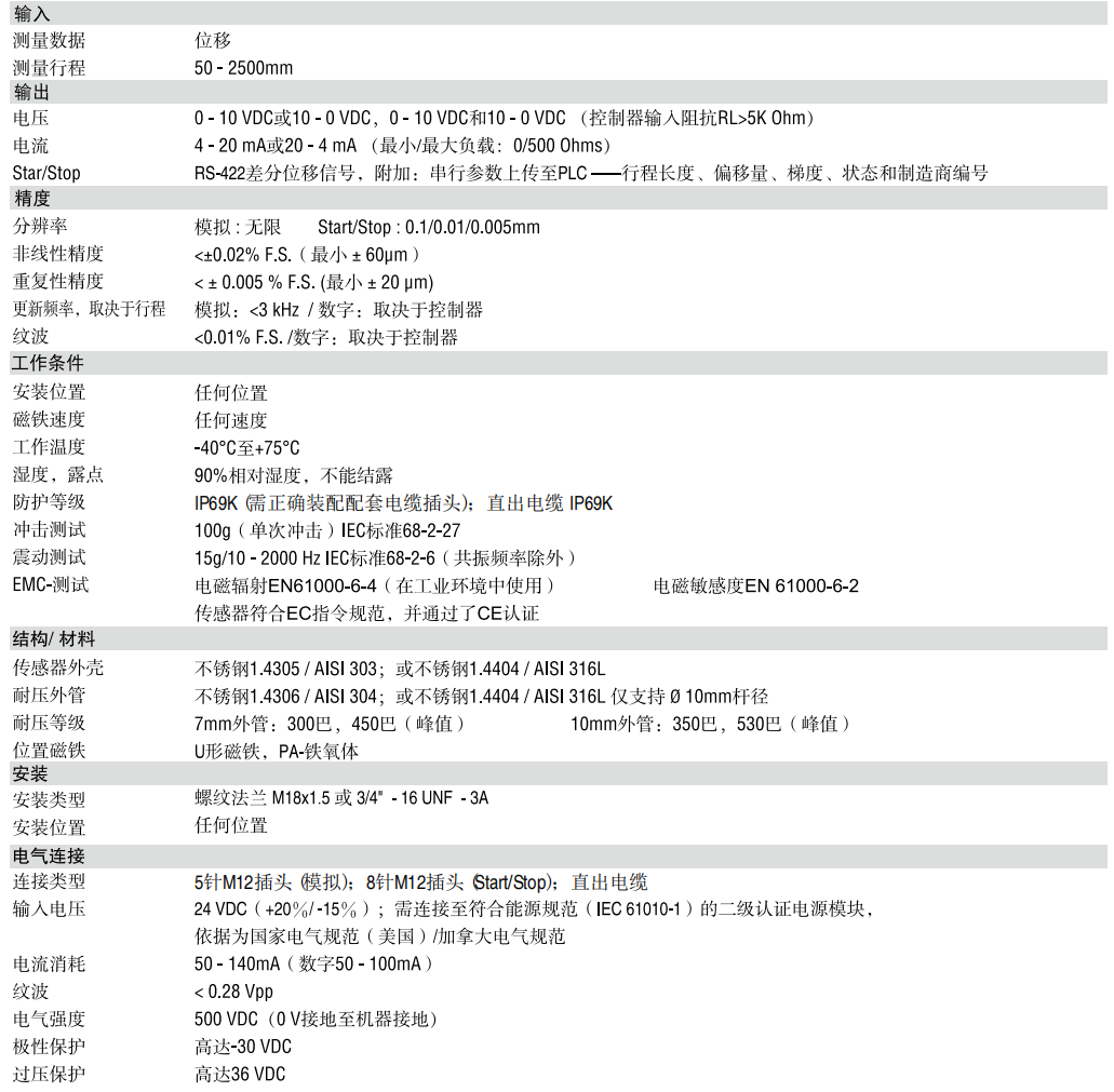 永磁磁体沿着传感器的固定外管,无磨损,非接触地移动。磁场透过传感器外管,开始信号的测量。Temposonics-EH系列传感器提供电流电压的模拟输出。输出信号与处于传感器有效行程的磁铁位置成正比。测量范围经出厂设定,无需重新校准。由于输出是直接的,因此,在与控制器或显示表连接时,无需信号处理单元。