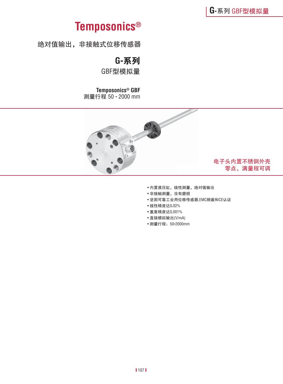 Temposonics® GB 系列,耐高压外观系列传感器测量范围:50-2000 毫米