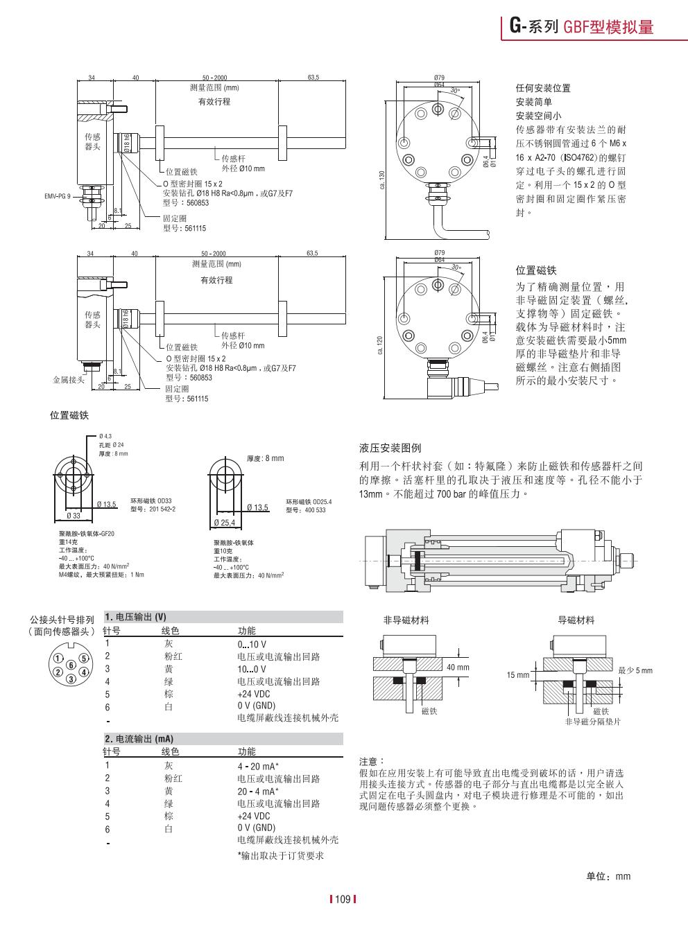 ·内置液压缸,线性测量,绝对值输出