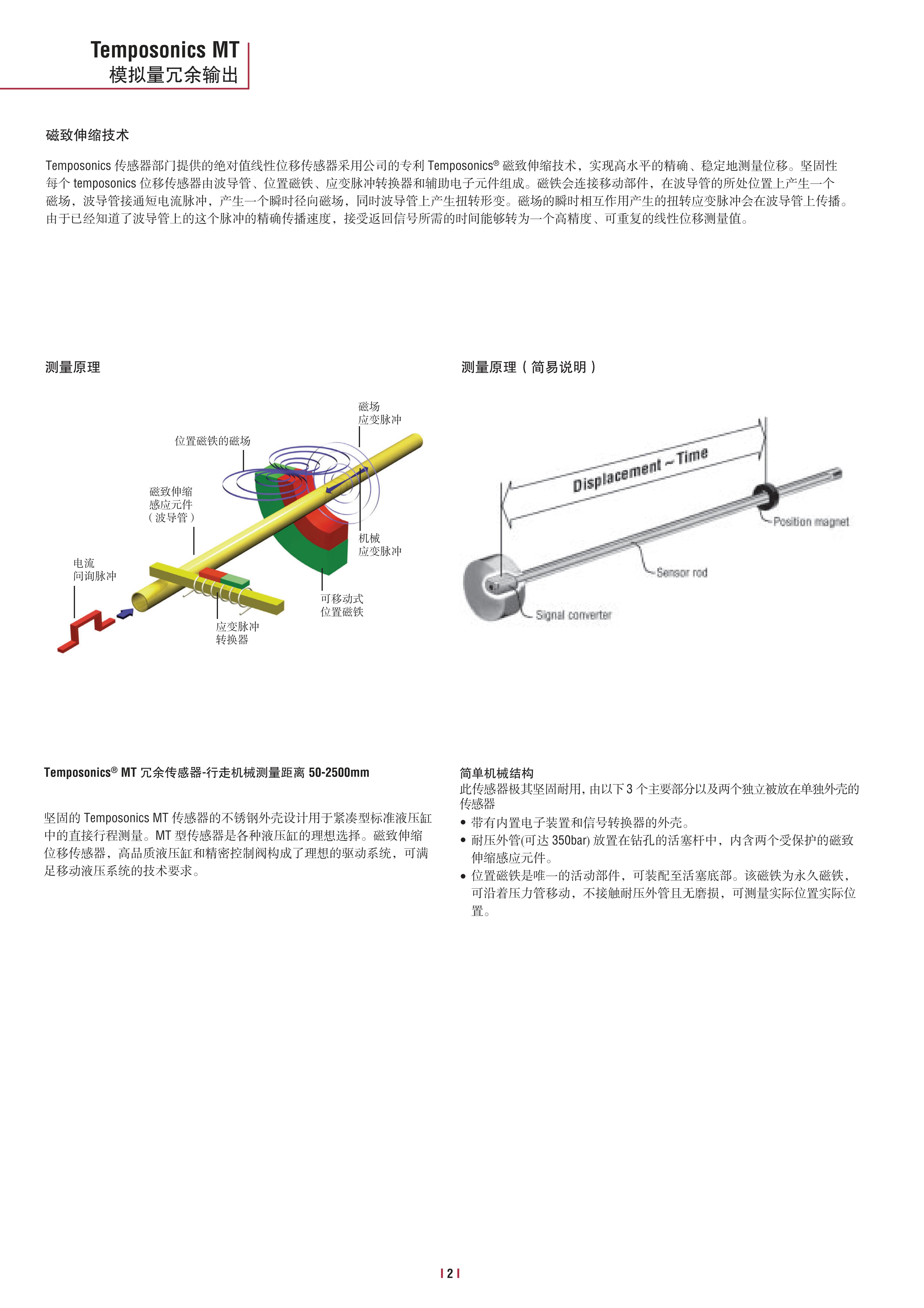 采用MTS研发的磁致伸缩测量原理,结合磁-机械效应,通过测量传感器元件中超声波(扭转脉冲)的传播速度实现位置检测: