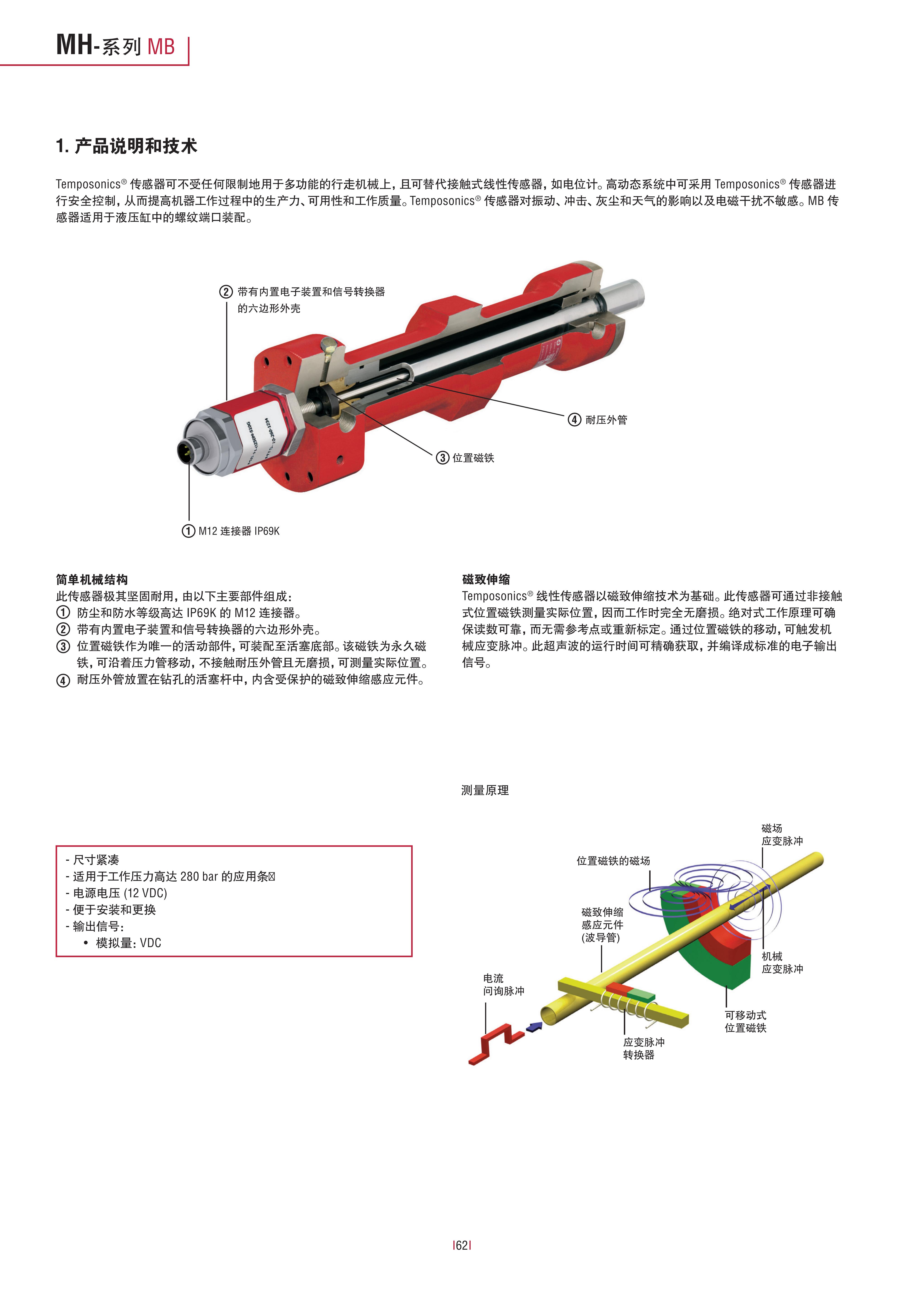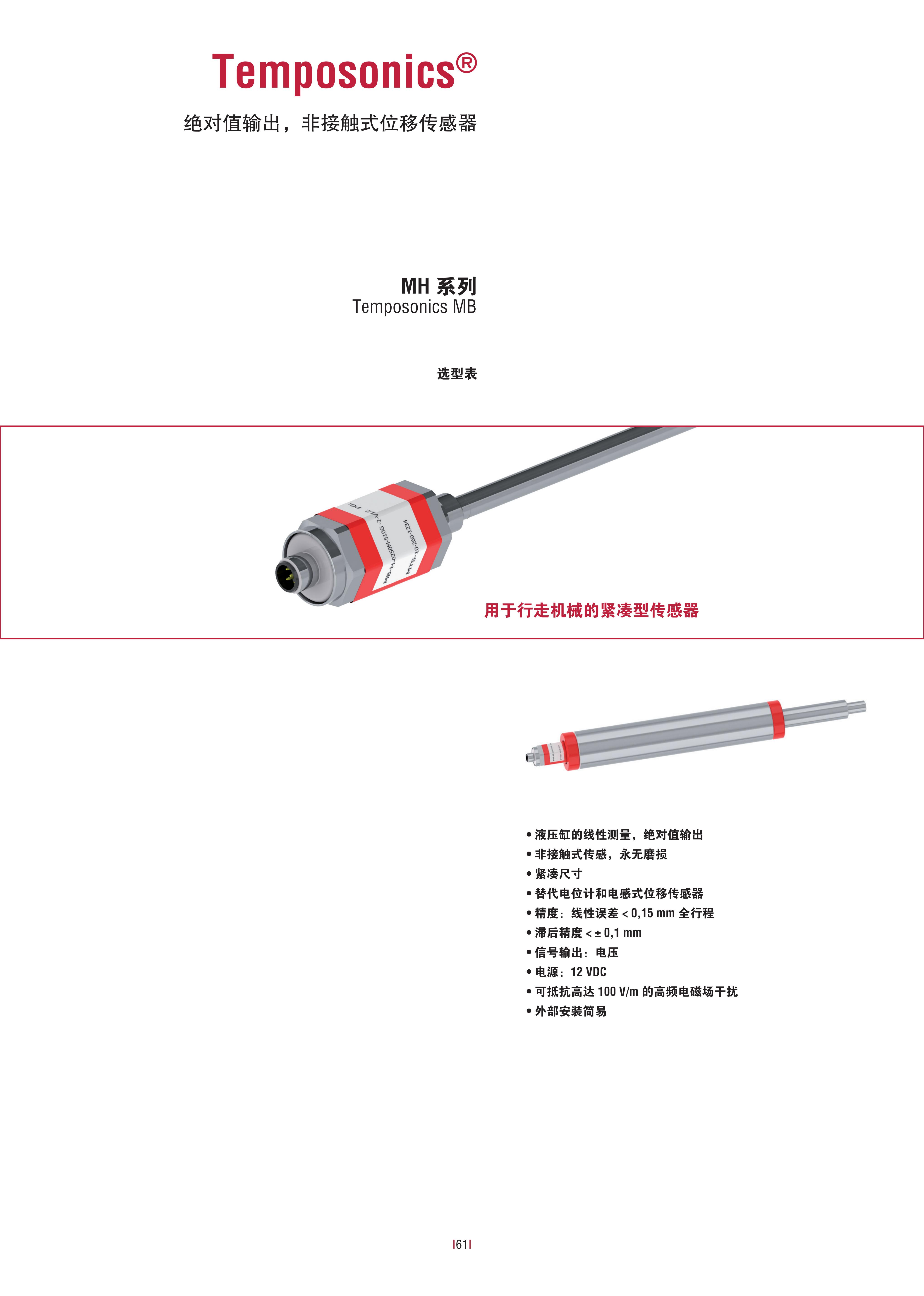 Temposonics MB传感器是专为行走机械液压缸设计的磁致伸缩位移传感器,以“紧凑耐用、安装简易、抗干扰强”为核心优势,采用非接触式测量技术,完美替代电位计和电感式位移传感器,为行走机械的液压系统提供稳定精准的线性位移测量支持。