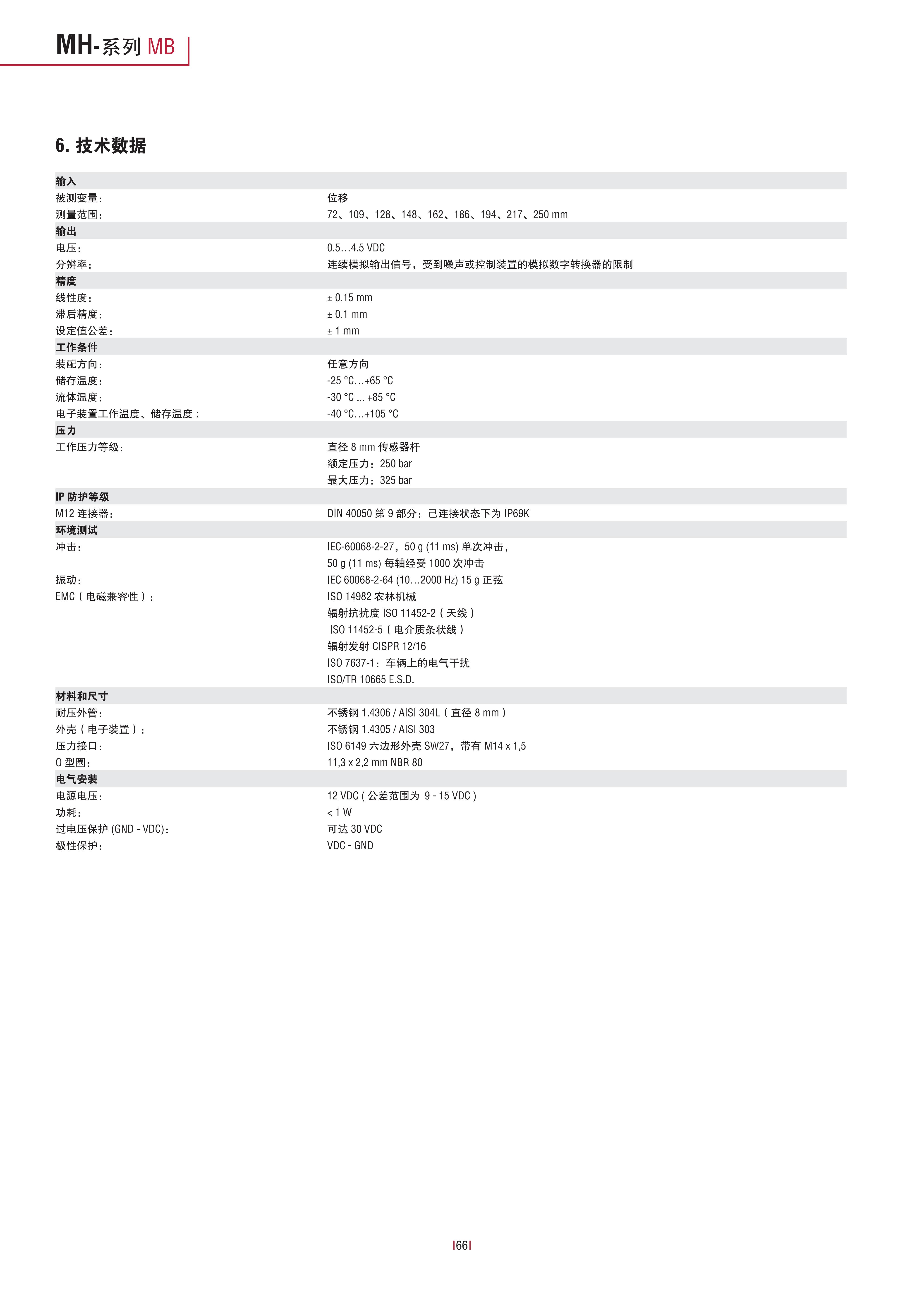 - 线性误差<0.15mm(全行程),滞后精度<±0.1mm,确保位移测量数据精准,为液压系统的稳定控制提供可靠依据;