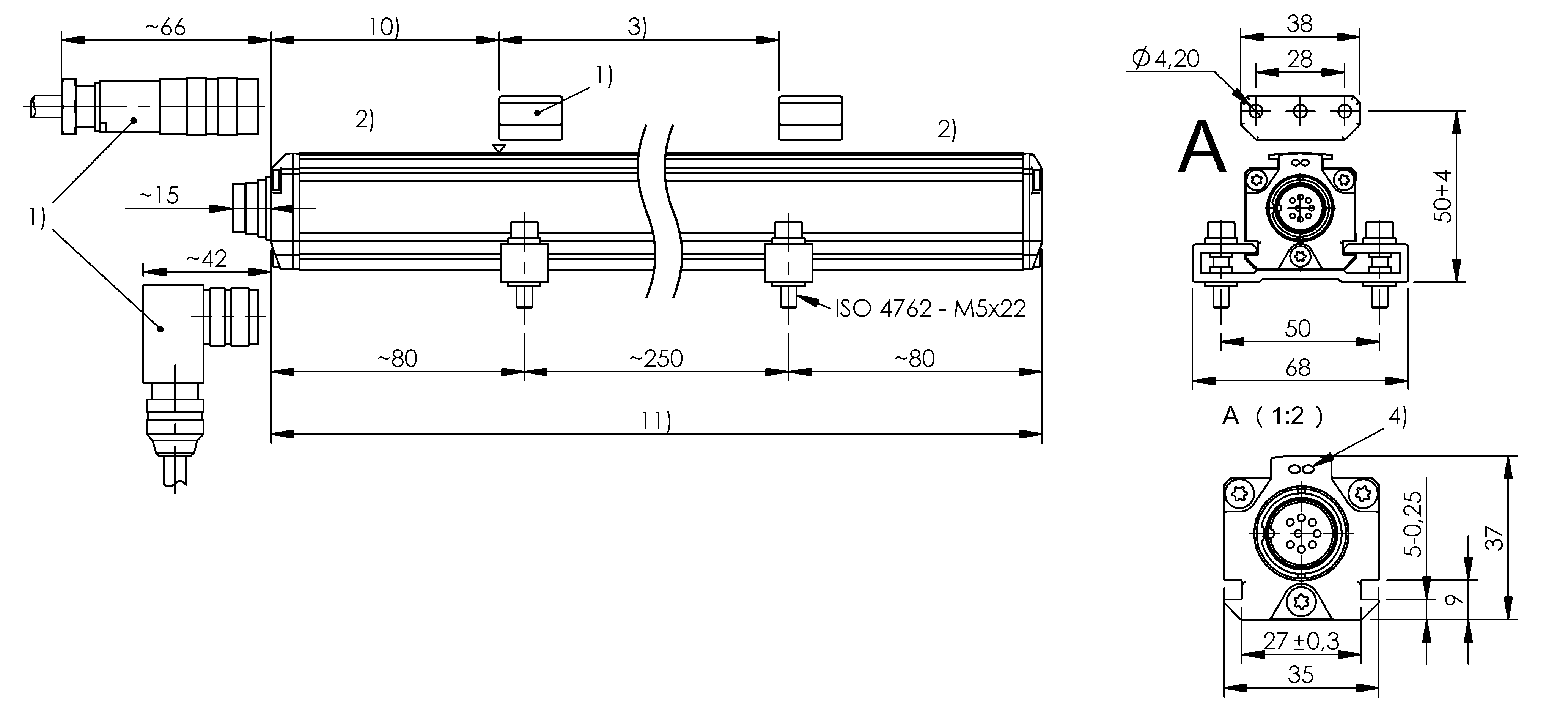 Profinet、EtherCAT、EtherNet/IP信号尺寸图: